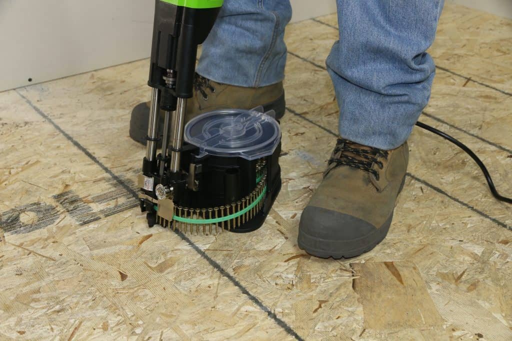 Forget about squeaky floors, our automatic screw gun systems will tightly secure your subfloor and underlayment with ease. Get a standard room screwed down in minutes!